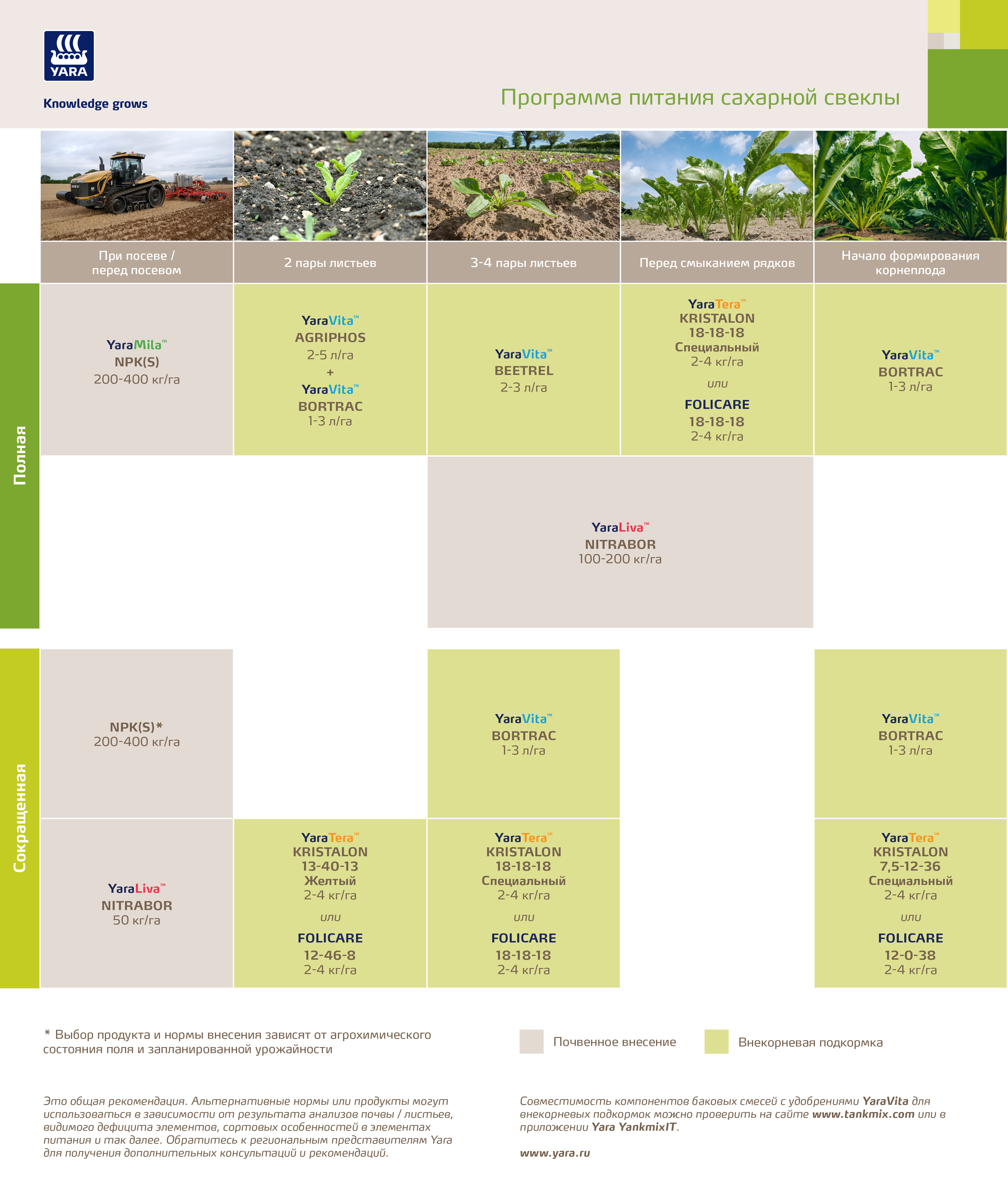 Сбалансированная программа питания способствует здоровому росту сахарной свеклы. В случае недостатка питательных веществ растения теряют устойчивость к различным болезням.