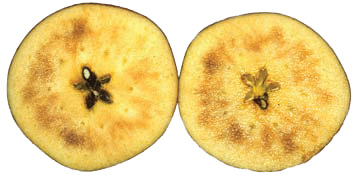 В тяжелых случаях ткани становятся рыхлыми. Это может объясняться интенсивным развитием водянистости сердечки, холодным хранением, а также дефицитом бора и фосфора. Эффективное питание может способствовать минимизации внутренней порчи в фруктовых плодах.